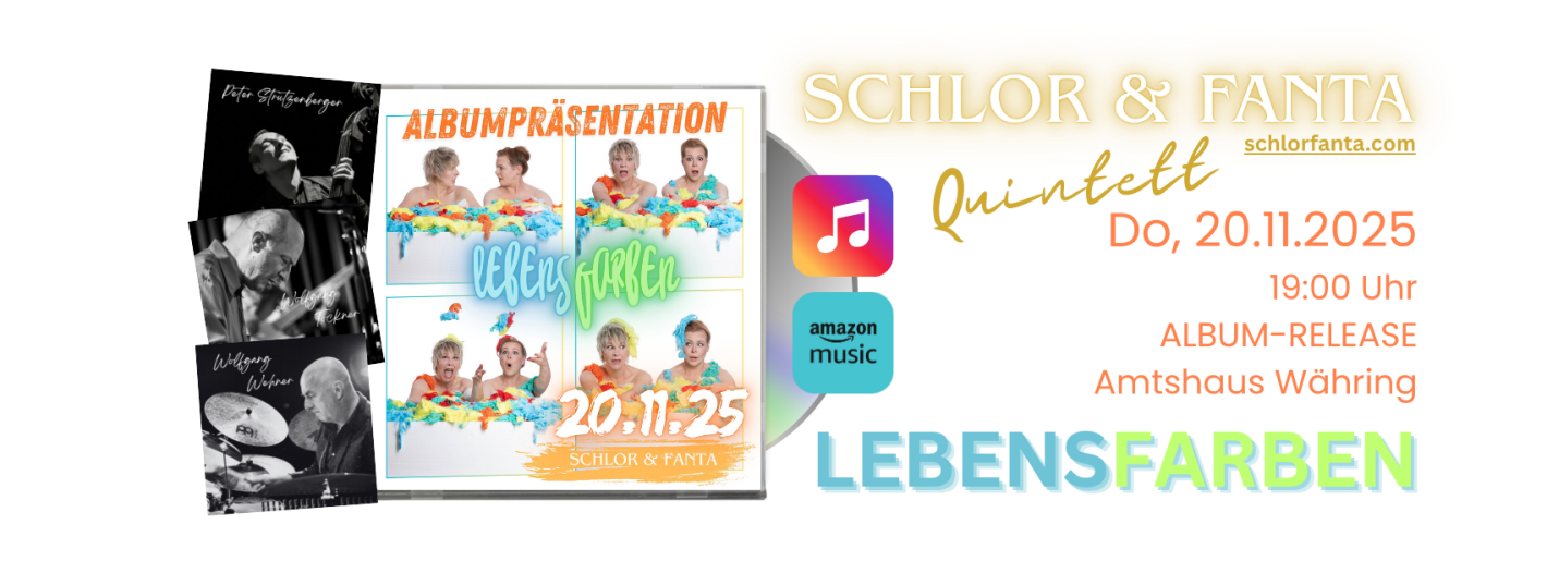 Darüber hinaus verwirklichten Andrea Schlor und Saskia Fanta zusammen mit Gerhard Blaboll und ihren Musikern Peter Strutzenberger, Wolfgang Tockner und Wolfgang Wehner ein neues pulsierendes Album mit dem vielversprechenden Titel „Lebensfarben“, das am 20.11.2025 im Amtshaus Währing präsentiert wird.